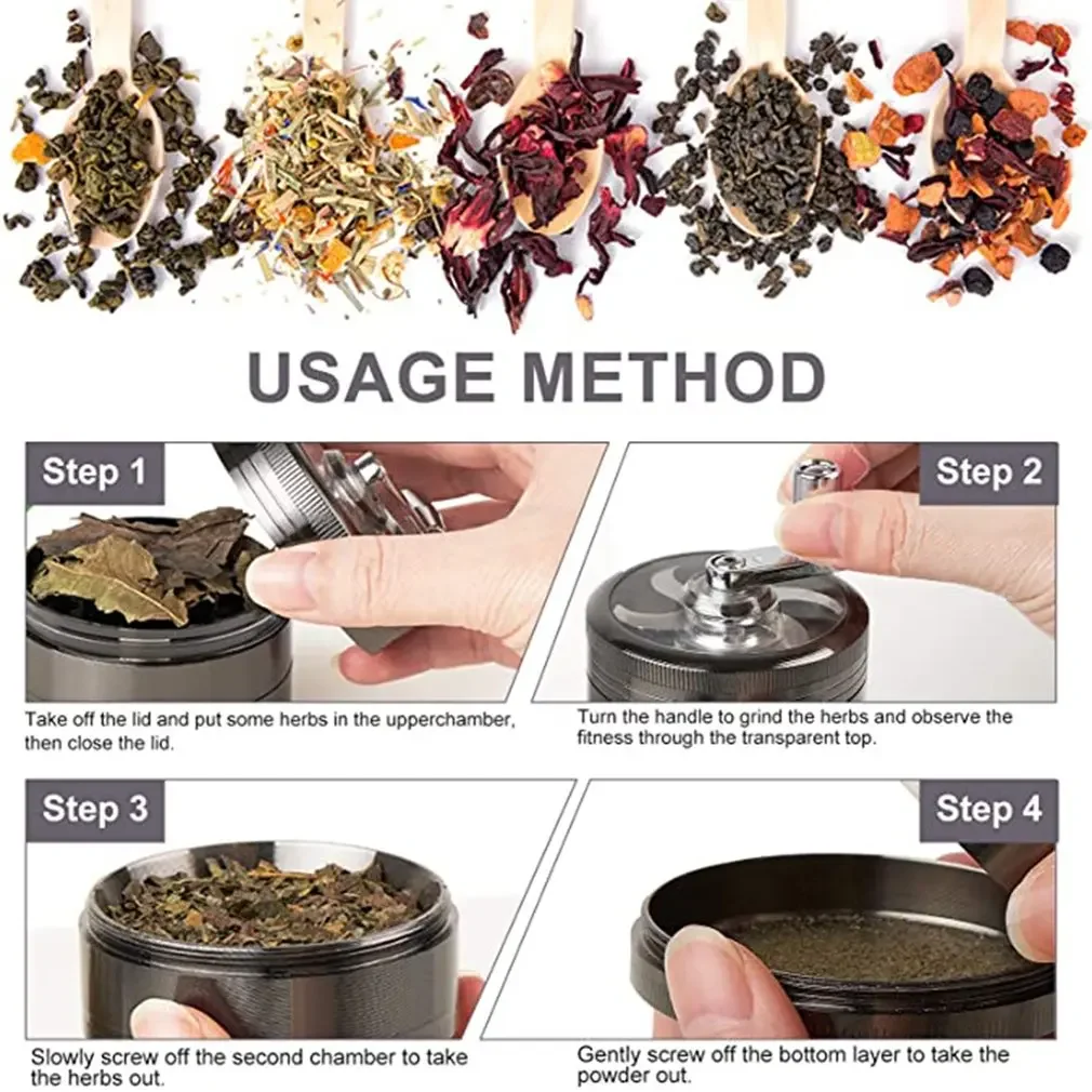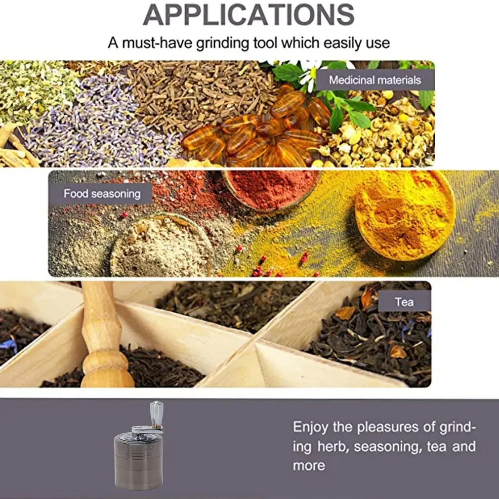 Description:4-layer Tobacco Grinder 40MM Manual Metal Zinc Alloy Herb Mill Spice Crusher Smoke Grinder Crusher Hand Crank Miller Men Gift